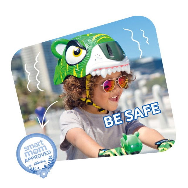 Casca bicicleta copii, model 3D, dimensiune reglabila 49-55 cm, 2-7 ani, Tiger Verde CrazySafety®